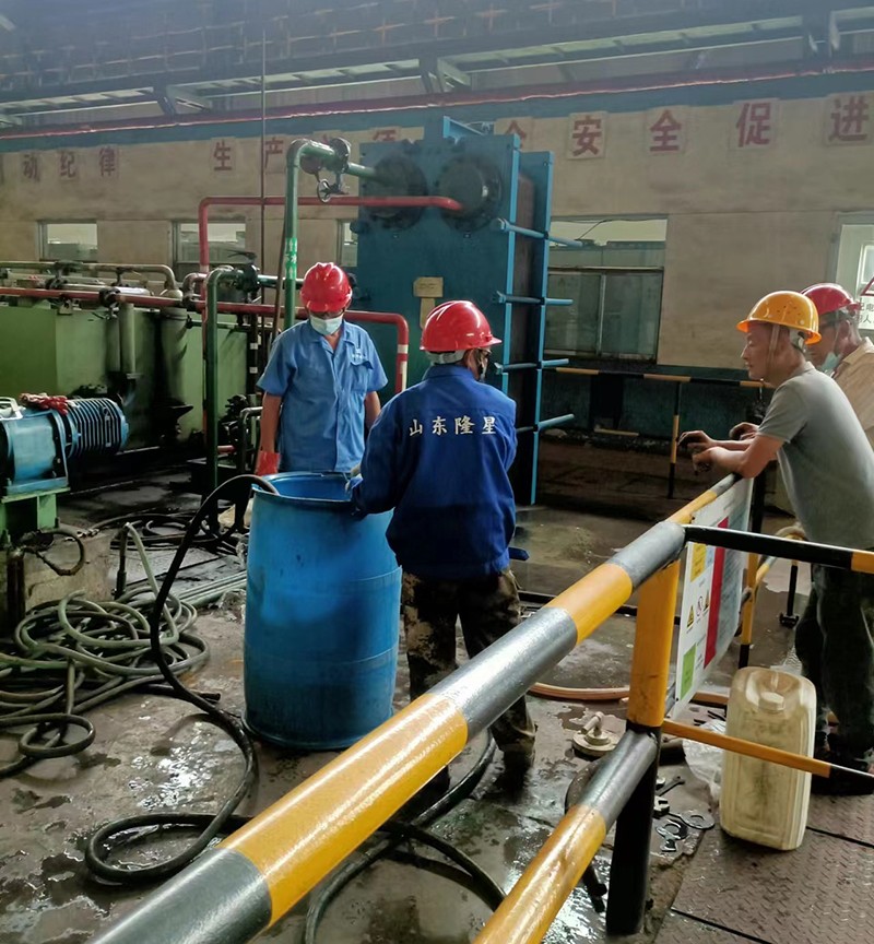 4、酸洗結(jié)束后,用化學劑軟化水按一定的比例配制好,利用動態(tài)循環(huán)的方式對換熱器進行堿洗,達到酸堿中和,使換熱器板片不再腐蝕;