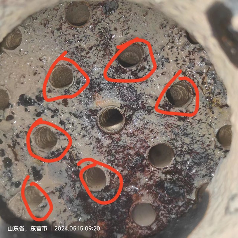 空冷器循環(huán)水系統(tǒng)經(jīng)長(zhǎng)期運(yùn)行,循環(huán)冷卻水中含有大量的鹽類物質(zhì)、腐蝕產(chǎn)物和各種微生物,由于未對(duì)空冷器進(jìn)行水處理,水側(cè)會(huì)結(jié)有大量的鈣酸鹽垢及藻類、微生物淤泥、粘泥等 ,這些污垢牢固附著于銅管內(nèi)表面,導(dǎo)致傳熱、循環(huán)壓力上升、機(jī)組真空度降低,影響機(jī)組的運(yùn)行效率,造成較大的經(jīng)濟(jì)損失。